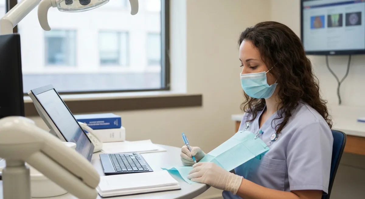 After the online classes, you need to do 1,000 hours of work in a dental office. You'll have to show your skills in a portfolio. You also need to pass with at least a 75% score.
