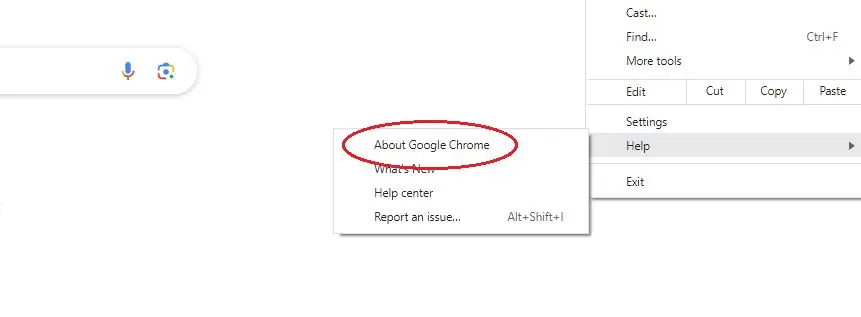 A side menu with the About Google Chrome option will appear when you hover the Help menu item.