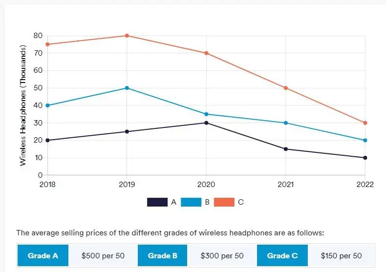 To determine the value of Grade B Wireless Headphone produced in 2025, we need to first calculate the total number of headphones produced in 2025. We then need to multiply this by 1.26 (representing the 26% growth) to calculate the amount of headphones produced in 2025. This should give us a figure for the total volume of Grade B Wireless Headphones which have been produced in 2025. With this figure, we are now able to to accurately determine the value of Grade B wireless Headphones produced in 2025.
