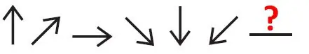 Think of these arrows as the large hand on a clock; the first arrow is at noon, the last arrow before the blank would be 12:40.Â