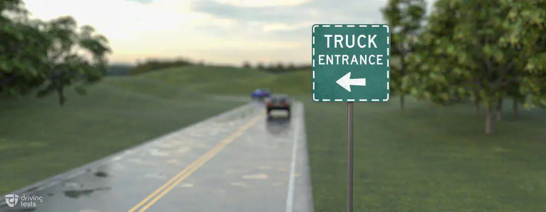 A truck entrance is indicated by this sign to the left.