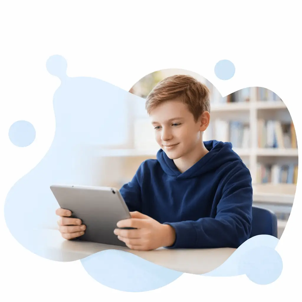 Specialized format for younger students with more audio support.